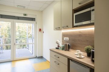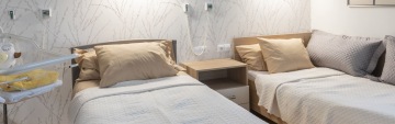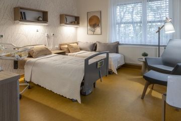 Nejlépe to jde zajistit na rodinném pokoji, který nabízí největší komfort. Ale také nadstandardní pokoje jsme dovybavili rozkládacími křesly pro pobyt doprovodu. Pokud je dostatek volných lůžek, lze se individuálně domluvit se zdravotníky i na přítomnosti doprovodu na standardním pokoji.